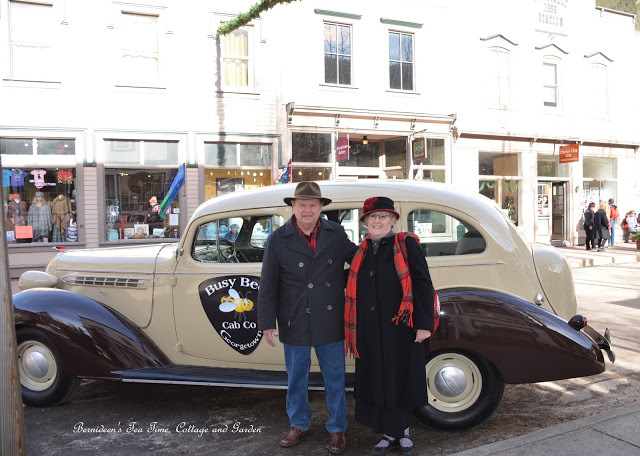 My friend Bernideen @ Bernideen's Tea Time, Cottage and Garden had the most clicks on her post. She shared a tour of the Rue de Noel Paris Street Market in Denver and the 55th Annual Georgetown Street Market in Georgetown, Colorado. That beautiful car you see in the photo was the car that picked up John Denver in the movie, "The Christmas Gift" in 1986. What fun! Doesn't Bernideen look snazzy in her red scarf and jaunty hat?