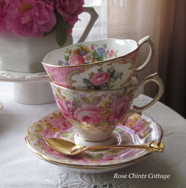 We will use my lovely Royal Albert Lady Carlyle and Serena teacups for our tea. Both teacups are a classic example of the romantic floral tradition that Royal Albert is famous for.