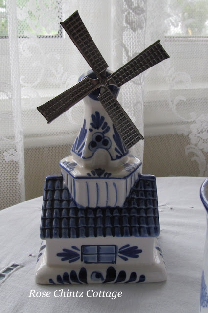 This is not a Dutch treat; just a simple pound cake served with fresh berries and whipped cream. But it's a nice treat with tea. The small white plate is made by Ciroa and the blue one is of course, Blue Willow made by Churchill.