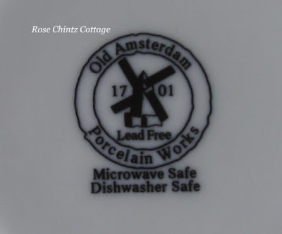 I didn't have a plain white teacup, although I do have several cream teacups, so I brought it home with me. It too has a Holland mark; Old Amsterdam. The cup has a tulip design on both the cup and the saucer.