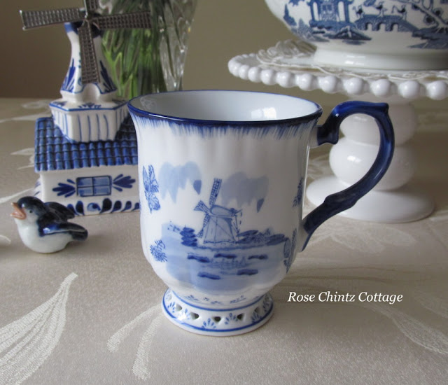 This porcelain mug is handpainted according to centuries of old Dutch craftmenship and I knew right away it was Delftware as soon as I opened his package. Loving the windmills and the reticulated base. It's perfect for sipping tea or coffee.