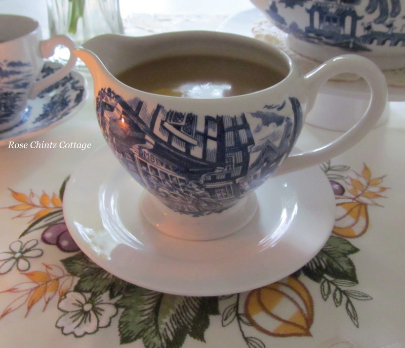 At first I had set my table with brown transferware and thought, it just looked flat. So I removed the brown and brought out my blue instead. Hope you enjoy!