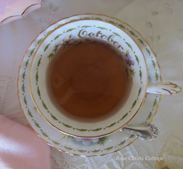 This tea party is all about sharing your joy of tea time and you may be as creative, fancy, or as laid back with your tea time as you wish! Do you have a favourite teacup/teapot, coffee cup/coffee pot, that you would like to share with us today? I would love to see it and I'm sure others would too! Collections such as tea spoons and creamers are also welcome as well as a trip to a Tea Room and a tea time recipe or tablescape.