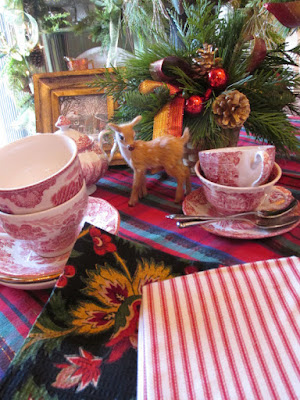 Linda @ Beautiful Ideas shared her Merry Christmas Tea. If you know me then you know I adore red transferware and Linda set hers out beautifully as well as lovely cookies and cake. But the thing that really stole my heart was her darling little deer that she found at a Christmas market in Vienna. I want one!