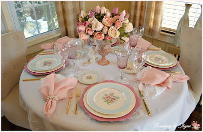 Oh what a sweet surprise to find my feminine tablescape feature here today. I am very thankful for the honor Sandi. More snow your way!!! Keep warm and cozy indoors . We ae expecting a bit of snow too but nothing to be worried about.